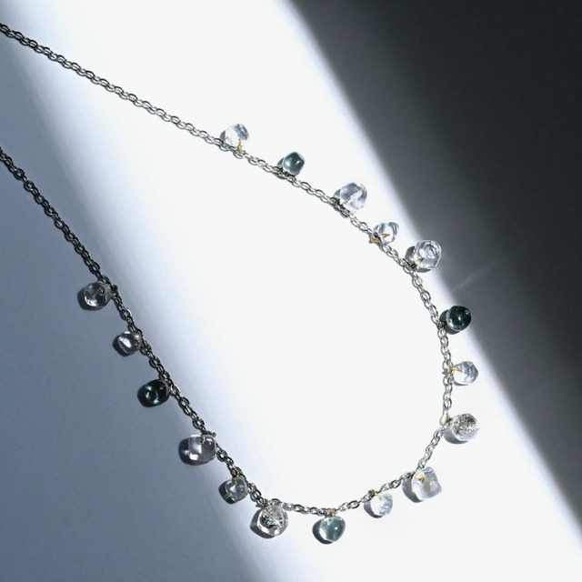硝子粒が放つ光を胸元に… クリア、グレー、プラチナ箔 それぞれひと粒ひと粒、バランスを見ながら ステンレスチェーンで組みました 色濃い服地に合わせると プラチナ箔が光を反射し白く輝きます 小粒ガラスで軽やかに装えます 長い方は約65cm、短い方が約44cmです 短くするご要望ありましたらお伝えください ◆素材…ステンレス ◆サイズ…着用サイズ最大65cm、最小約44cm アジャスター約11㎝ ・お客様の端末環境により色合いが実際と異なる場合がございます。 ・商品に欠陥がある場合を除き、基本的に返品には応じかねます。 ・梱包に留意しておりますが、輸送時に破損などのおそれもございますので、到着後は早めのご確認をお願いします。