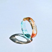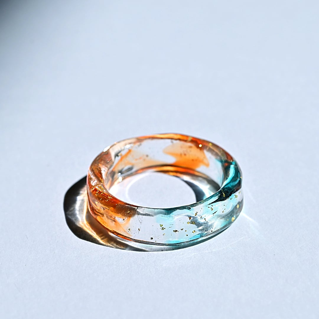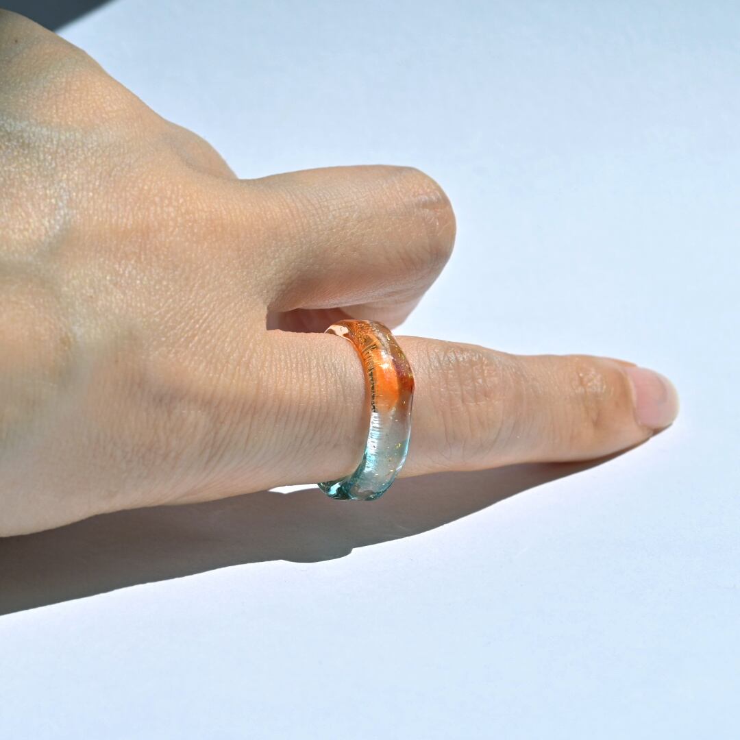 ガラスリング 14.5号 オレンジ/スカイブルー/金箔
