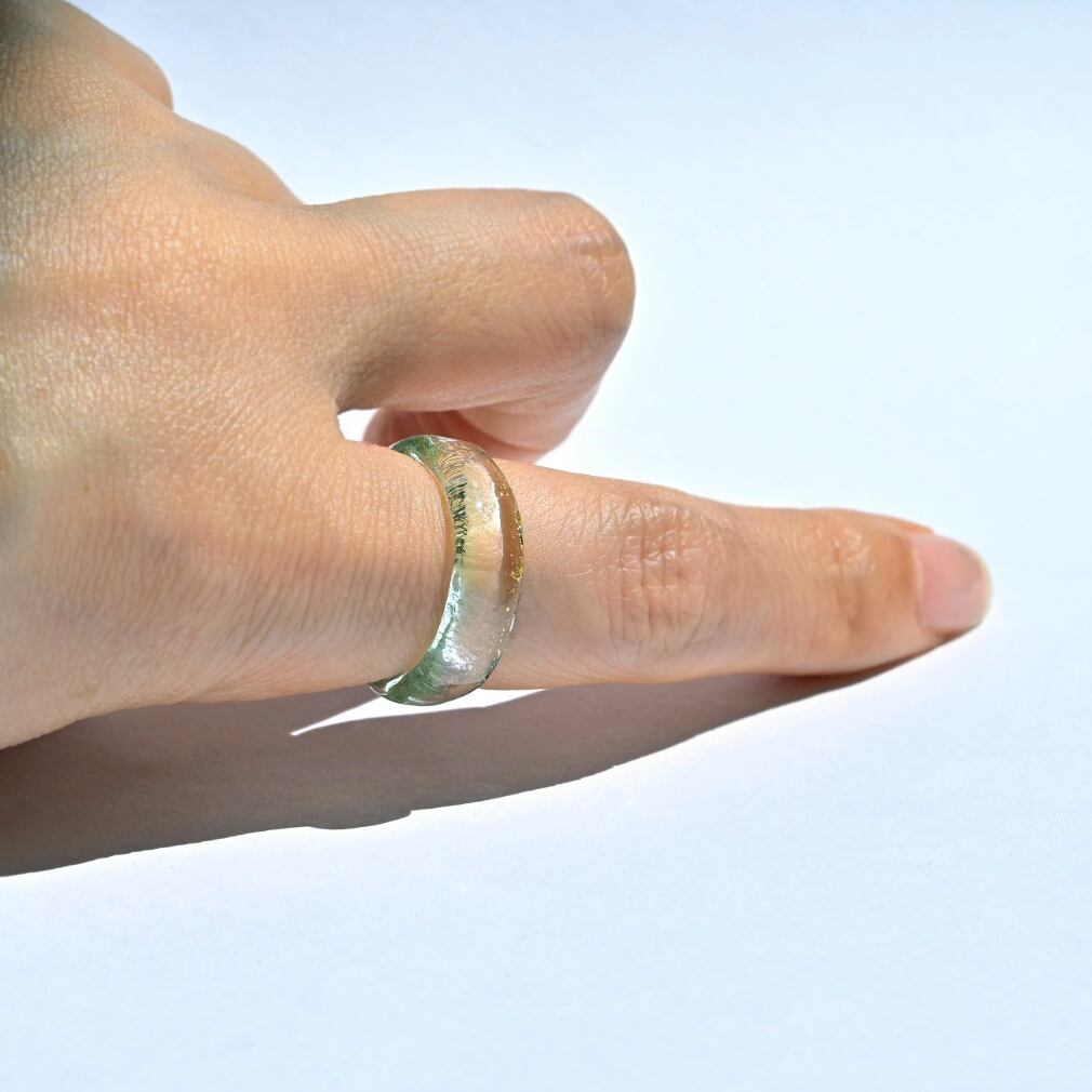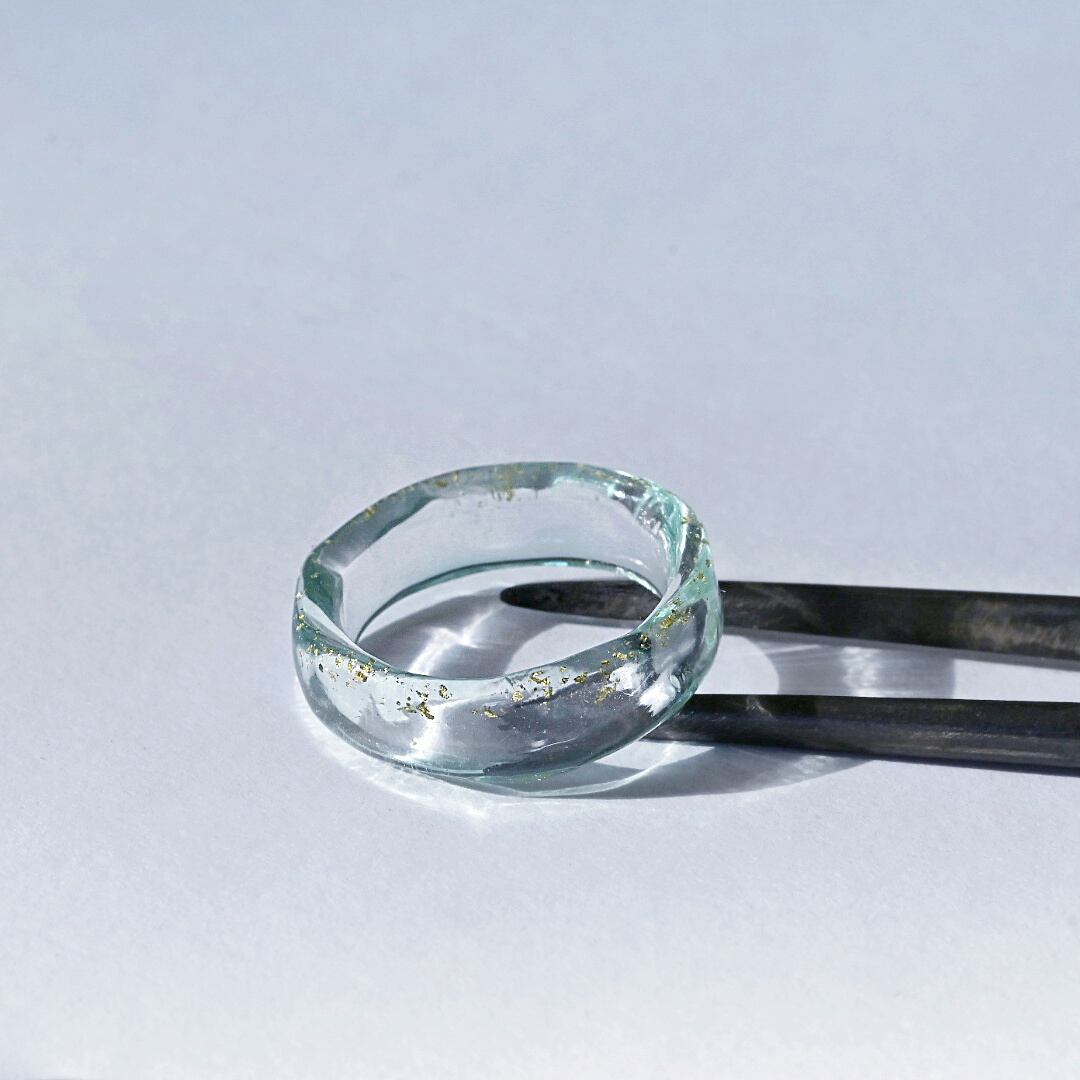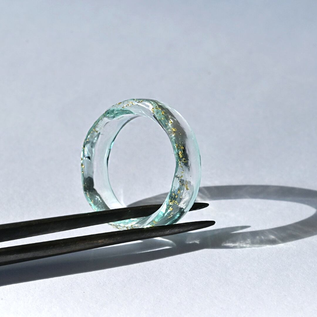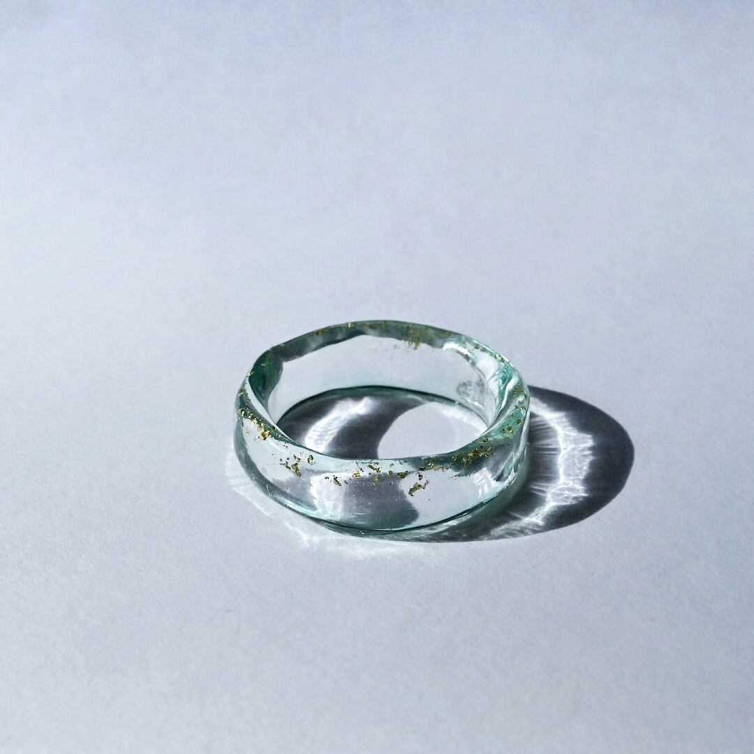 ガラスリング 14号弱 ミント/金箔