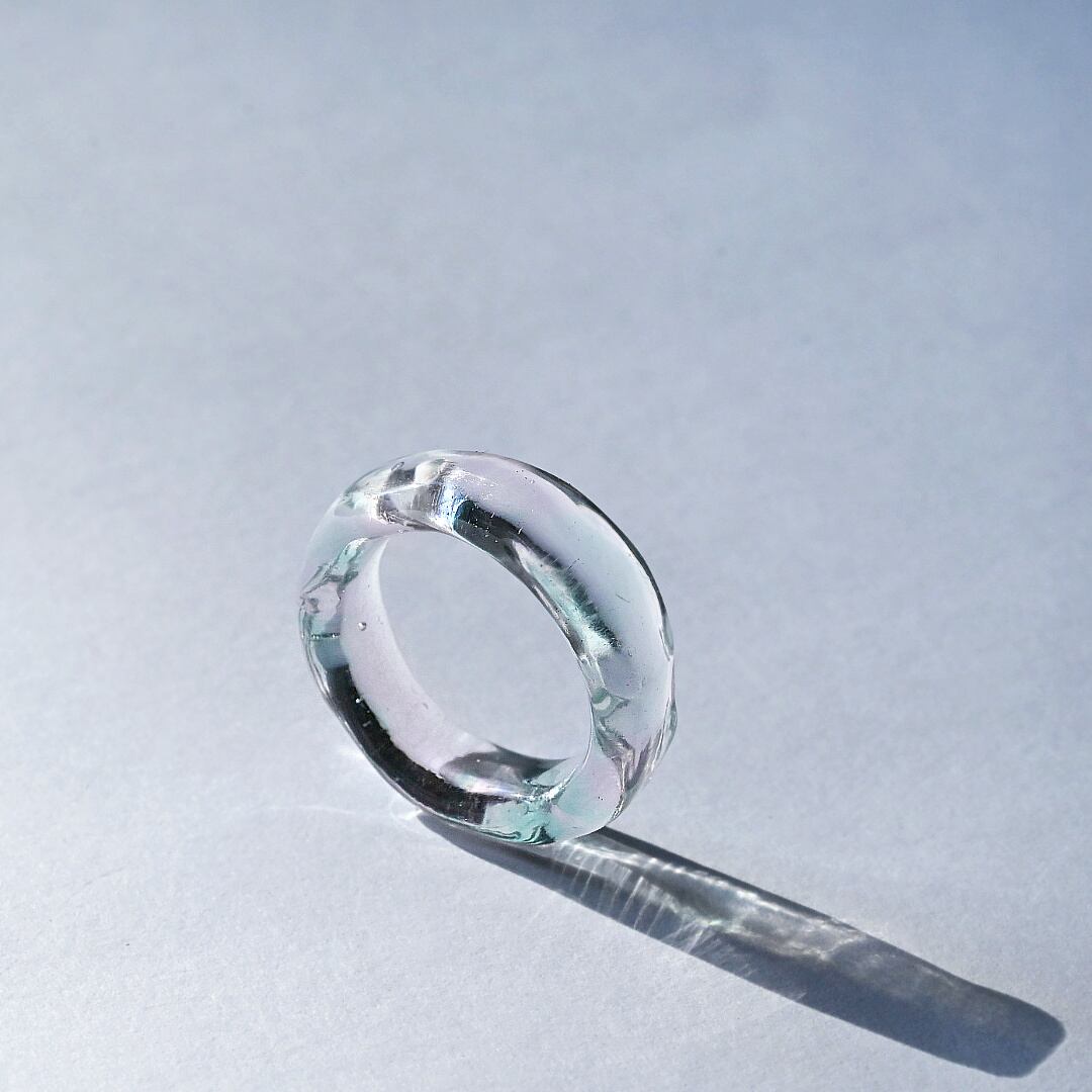幅のあるリングですが、内側はすべりが良いので「細身の指輪」と同じ号数でのご検討が良いと思います。