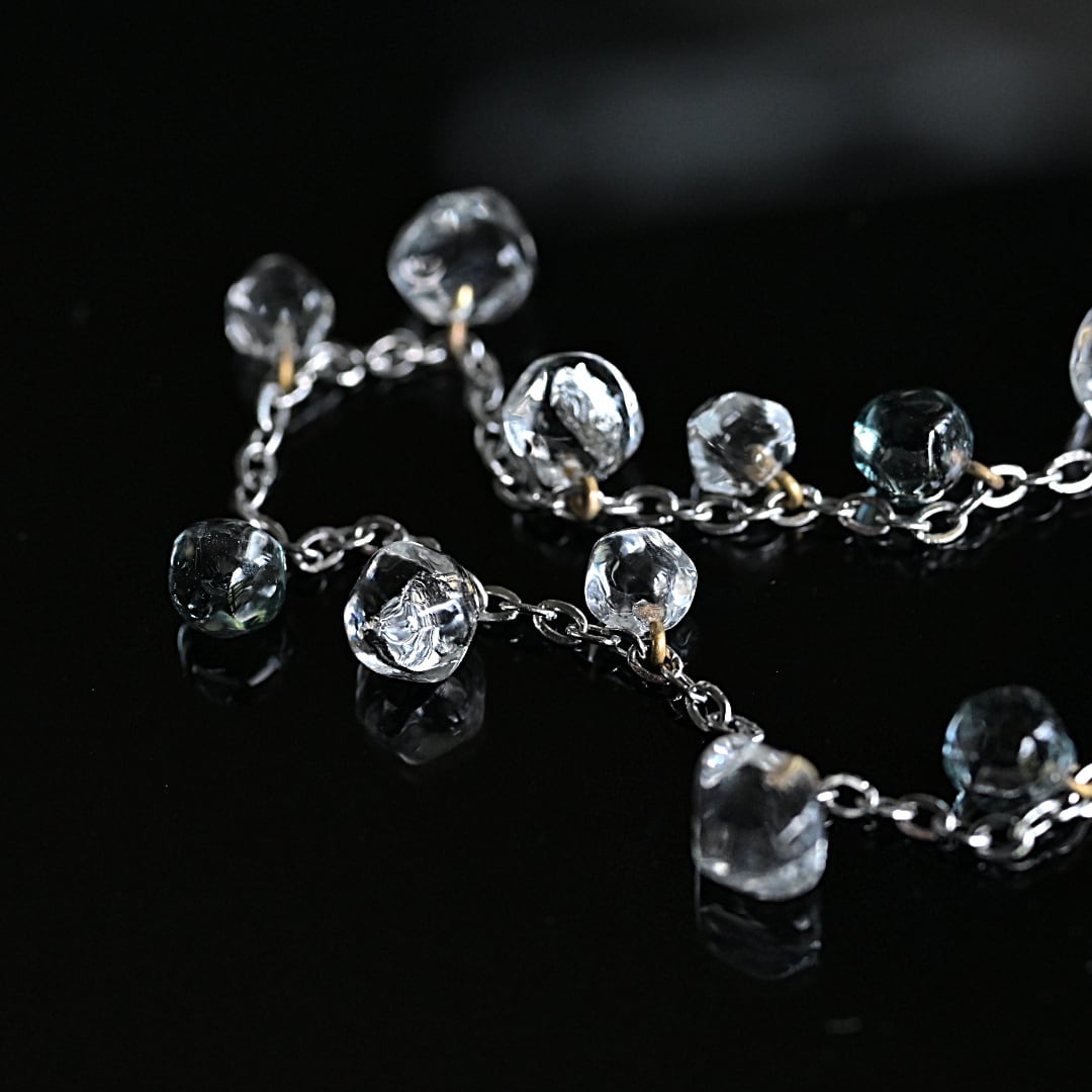 硝子粒が放つ光を胸元に…