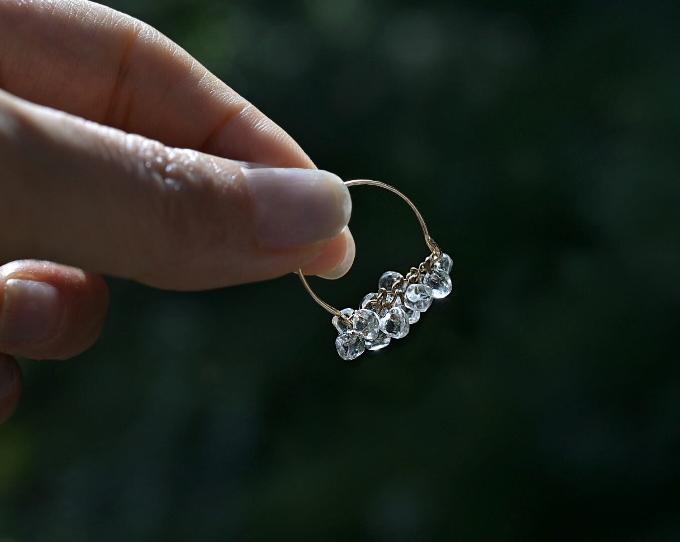 ガラス粒はチェーンでしなやかに動きキラキラと輝きます