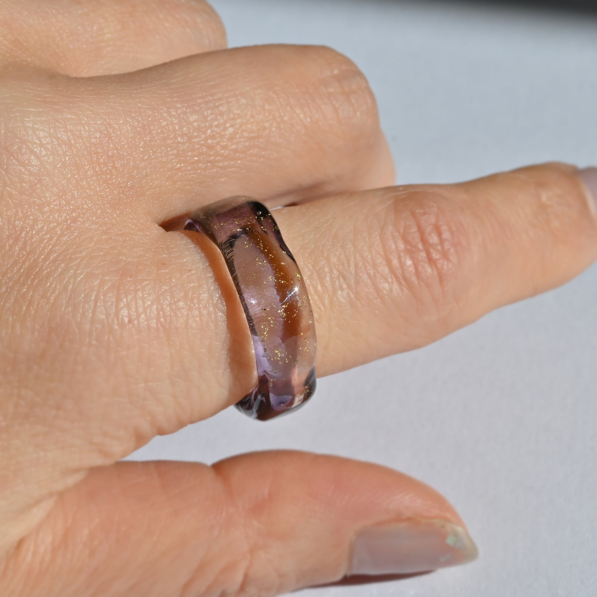 ガラスリング 13号 パープル/金箔