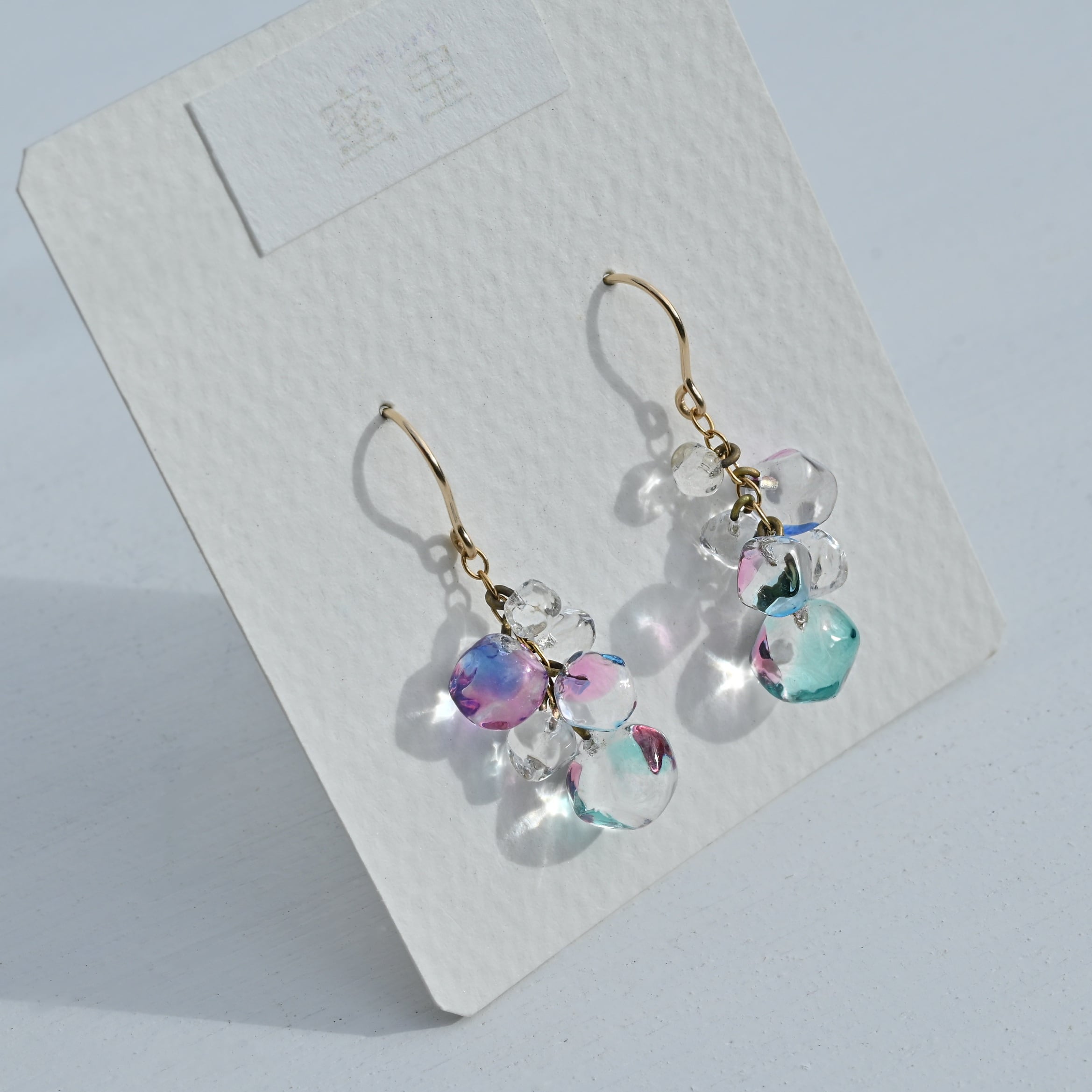 色遊ぶガラス粒が揺れるピアス