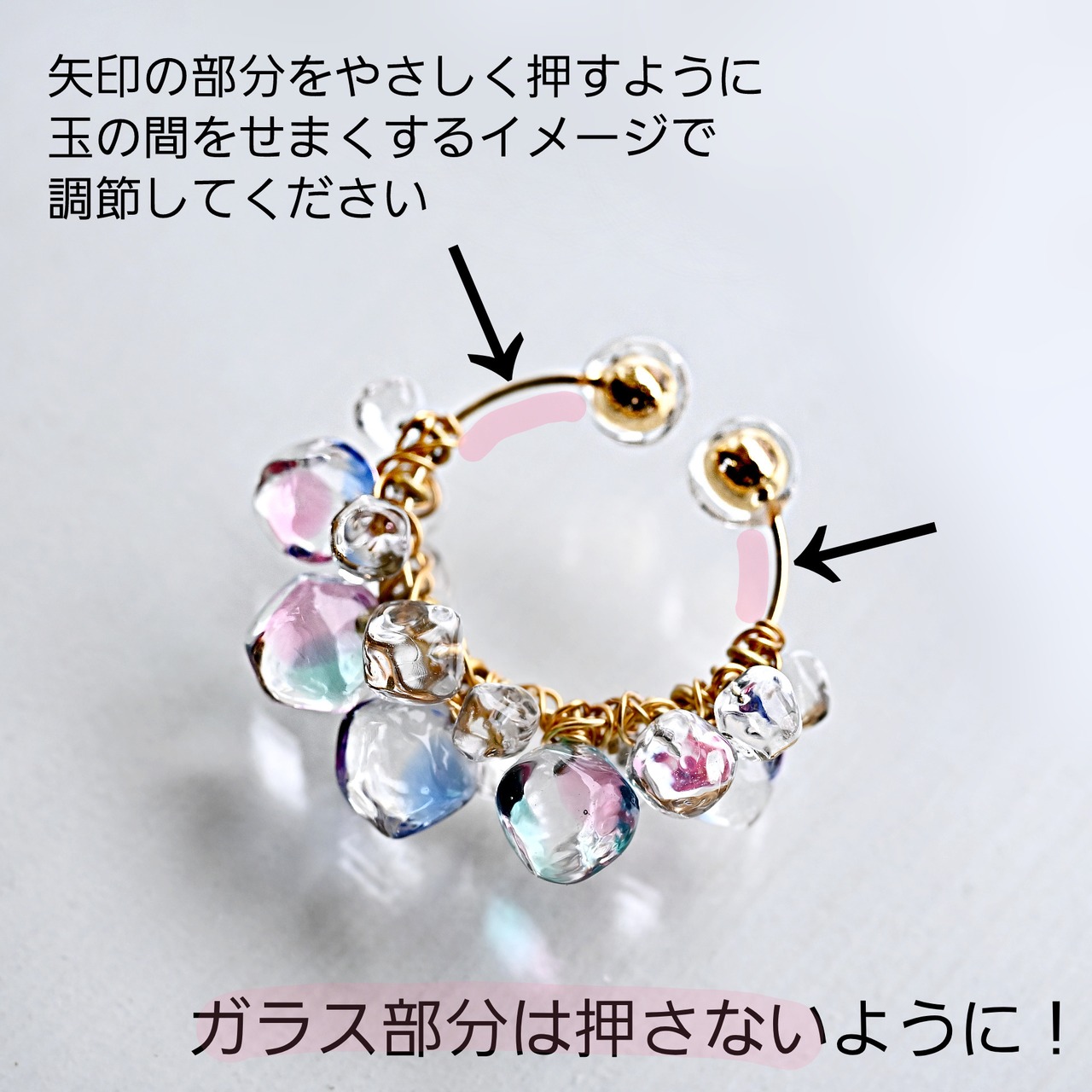 調節や装着の際はガラス粒を押したりひっぱらないようお願いいたします。(画像6.7枚目参照)