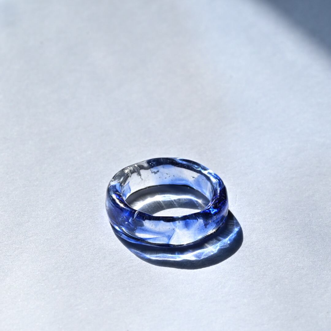 ガラスリング 7号強 ネイビー/プラチナ箔